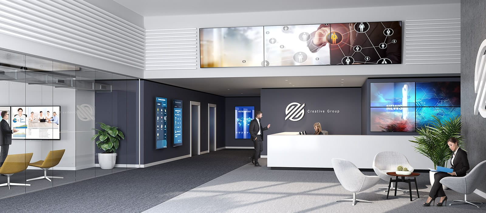 Tingkatkan kesan pertama dengan sistem display cerdas, wayfinding, dan manajemen tamu digital yang elegan dan efisien.